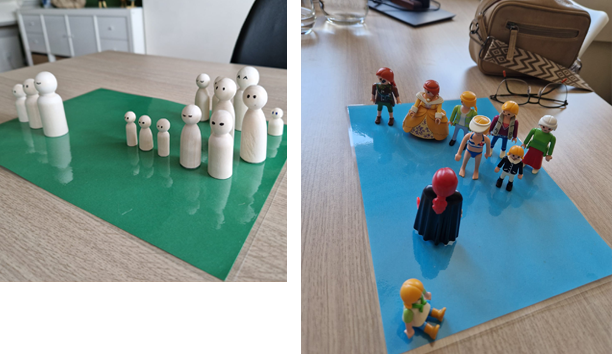 POPtalk is een laagdrempelige methode waarbij je een situatie of probleem gaat opstellen aan de hand van poppetjes, stenen, kaarten en symbolisch materiaal. Je kunt aspecten van iemands belevingswereld letterlijk in beeld brengen. Je kijkt, voelt en ontdekt.