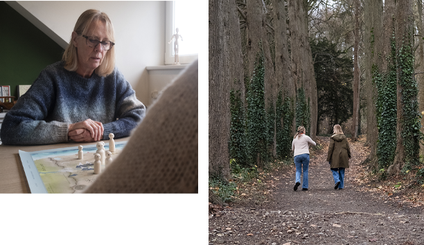 Het helpt om afstand te nemen van je situatie, zonder jezelf kwijt te raken. Je krijgt zicht op wat je belemmert én op wat je nodig hebt om weer in beweging te komen. Veiligheid en respect vormen de basis van ieder gesprek.
